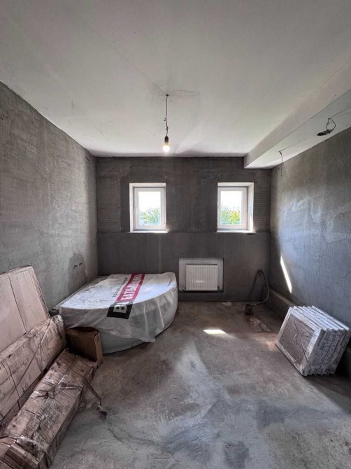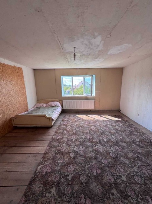 Пропонується до продажу двоповерховий будинок смт.Черняхів! Без комісії для покупця!!! Загальна площа будинку — 170 м2. Побудований у 2008 р. з цегли та шлакоблоку, утеплений пінопластом, залізобетонне перекриття. Усі чорнові роботи в будинку завершені — вирівняні та пошпакльовані стіни, підведені комунікації, приміщення готові до чистового ремонту. Планування: Перший поверх: дві окремі кімнати, кухня 26 м2, санвузол 11,5 м2, льох. Другий поверх: дві кімнати, гардероб. Комунікації: Опалення — твердопаливне, електричне, камін. Вода — криниця, заведена в будинок Каналізація — септик з переливом Ділянка — 15 соток, доглянута з фруктовими деревами, та зеленими насадженнями.