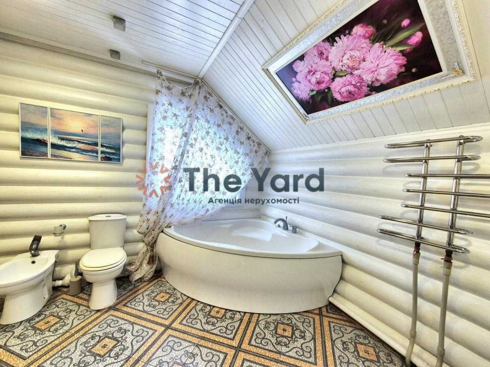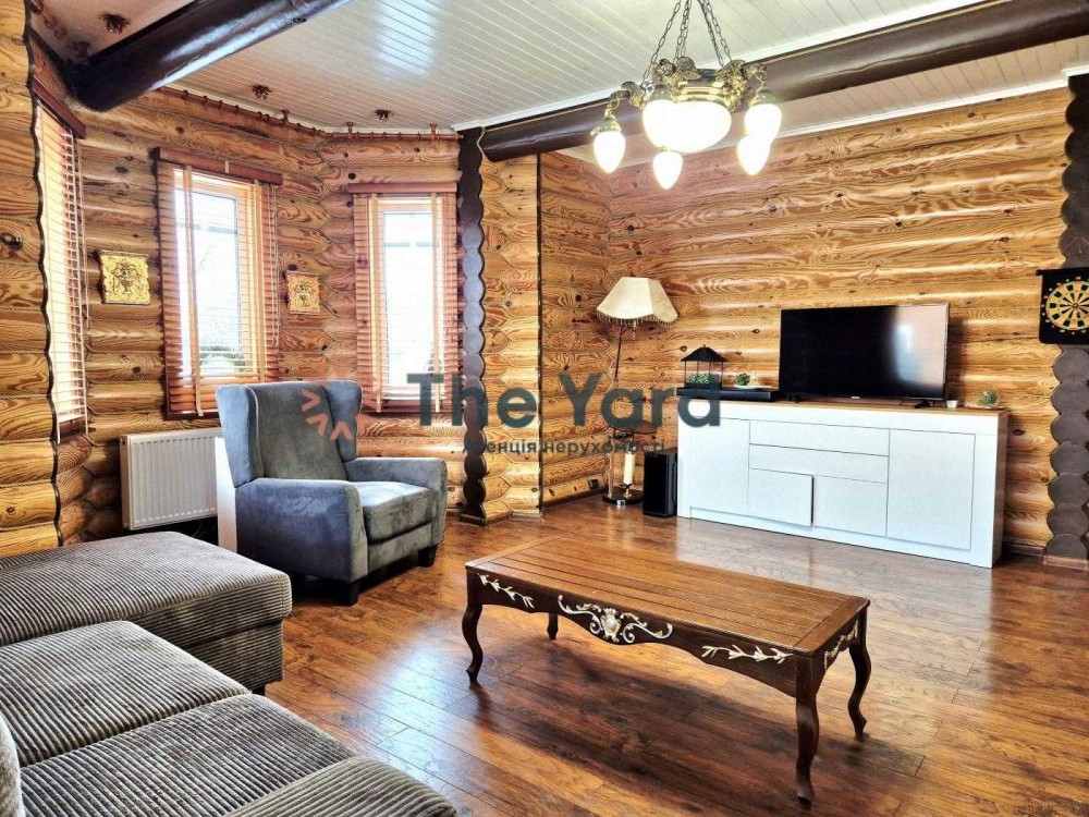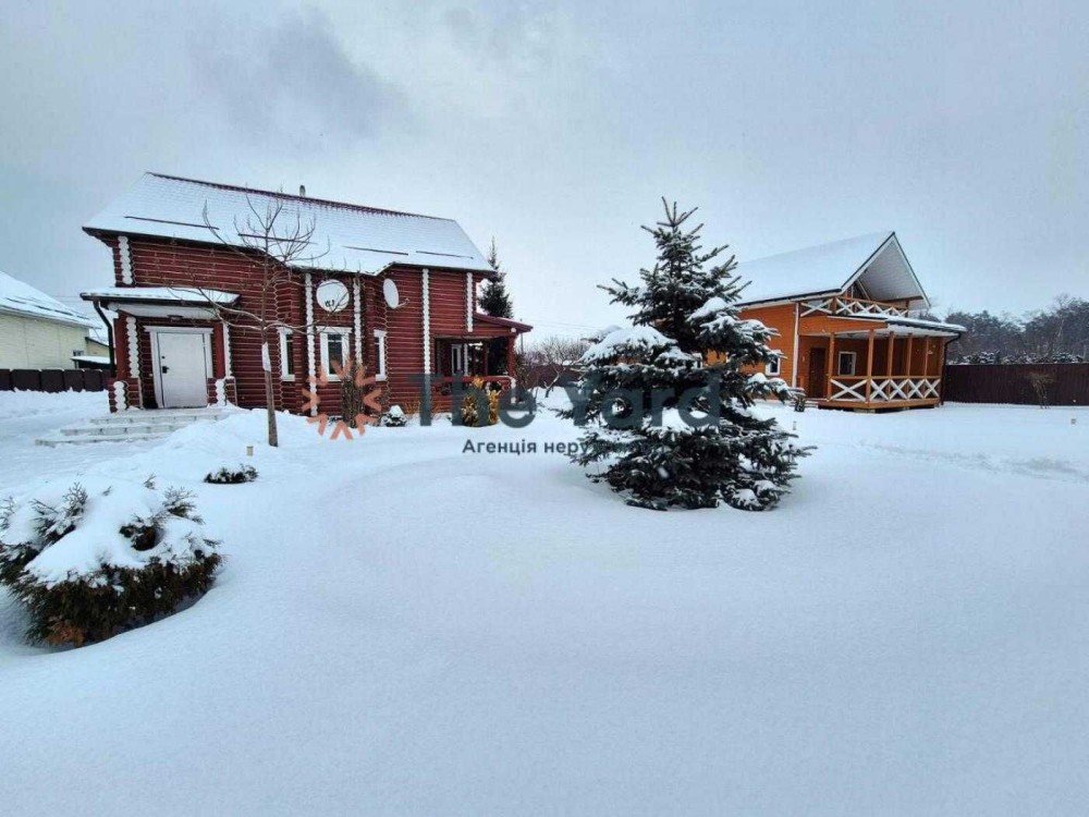 Продається чудовий заміський будинок зі зрубу з гостьовим будинком в с. Богданівка, Броварський р-н. Київська область, та гостьовий будинок, що знаходиться на одній ділянці, з чудовим ландшафтним дизайном.