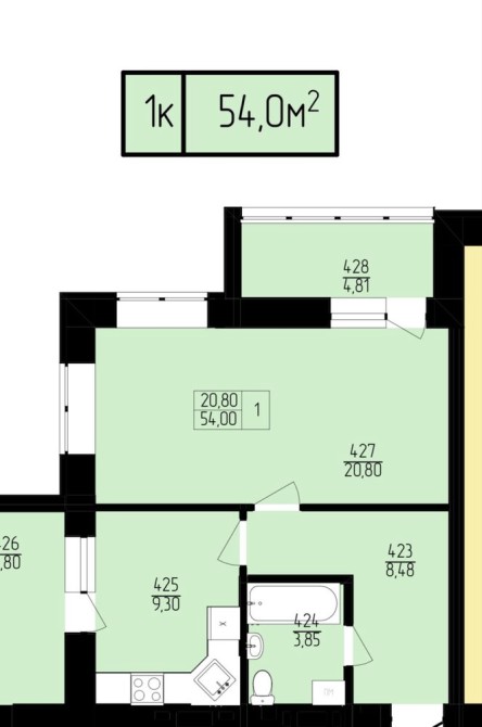 • Простора квартира 54 м²