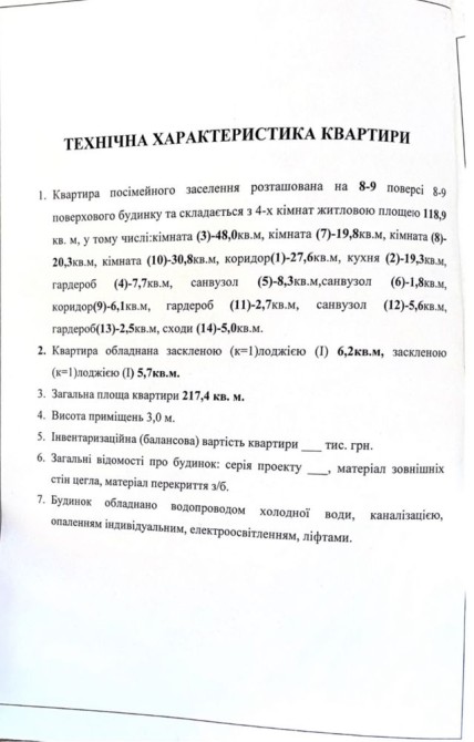 Загальна площа квартири - 218м2,