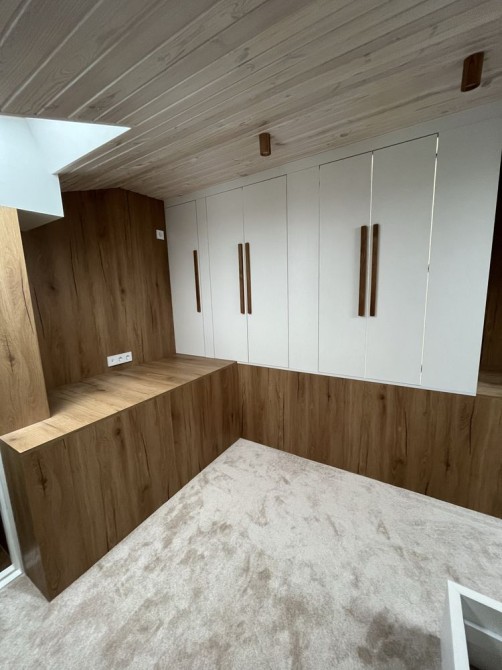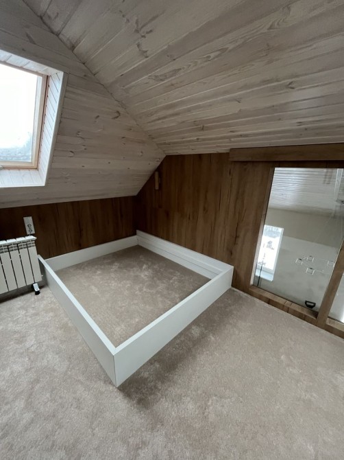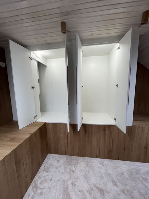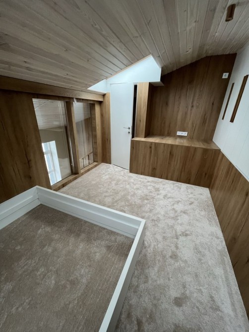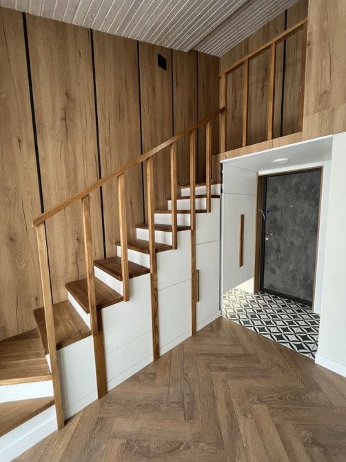 - Квартира має абсолютно унікальне планування: спальне місце винесене на другий рівень (антресоль), що створює додатковий простір і додає затишку.