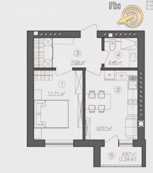 1-К квартира 36м2 Балкон. Кухня-студія - фото 3