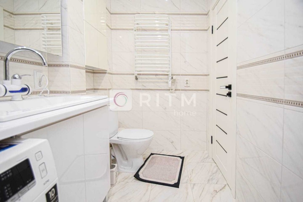 Затишна квартира має роздільне планування, яким передбачено окрему спальну кімнату з міжкімнатними дверима. Кухня площею 9 м2 поєднана з вітальнею та має шафи для посуду, холодильник, плиту, духовку, мікрохвильову піч, посудомийну машину, витяжну вентиляцію та все щоб ви отримали задоволення від приготування улюблених страв. Квартира укомплектована побутовою технікою, місткими шафами для зберігання речей, зручним диваном та усім необхідним для комфортного тривалого проживання.