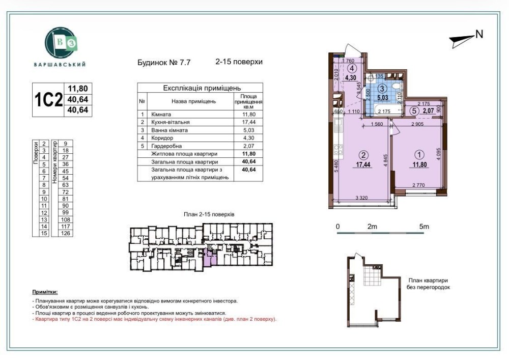Продається 1 кімнатна квартира планування 1С2 40 м2 у ЖК «Варшавський 3», будинок 7.7.