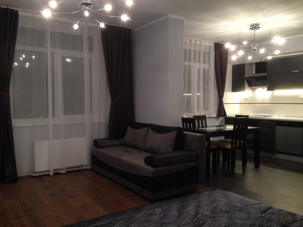 1-к тепла квартира в центрі Києва ( ЖК "Бруклин", ул.Ямская,52 ). Квартира з балконом ( електрика , вода та тепло є ), після дизайнерского ремонту з дорогих материалів, 37 м.кв., розташована на 6 поверсі 10-поверхового будинку , повністью обладнана меблями та технікою : телевізор 46", SmartTV-приставка, саундбар з Bluetoth та сабвуфером (домашній кінотеатр) , холодильник, посудомийна машина , пральна машина, кондиціонер, електроповерхність , духовка, микрохвильовка, электрочайник, бойлер, пилосмок , праска, інтернет 1 Гигабіт, Wi-Fi, 2 теплих пола. Цілодобова охорона, відеонагляд . Бомбосховище в будинку. Поштомат Нова Пошта у під'їзді. Поруч знаходятся: ст.м. Палац «Україна» (5 хв.), Володимирський ринок, ТРЦ Ocean Plaza.