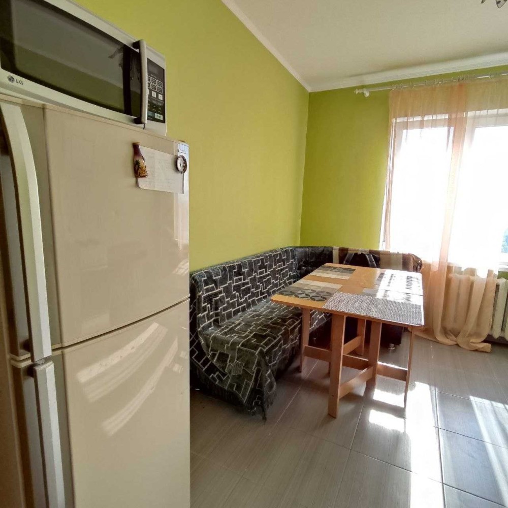 Диван, стінка, шафа-купе та вся необхідна побутова техніка: холодильник, пральна машина, мікрохвильова піч, бойлер.