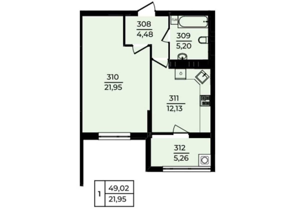 Площа житла даного планування 49,02 м².