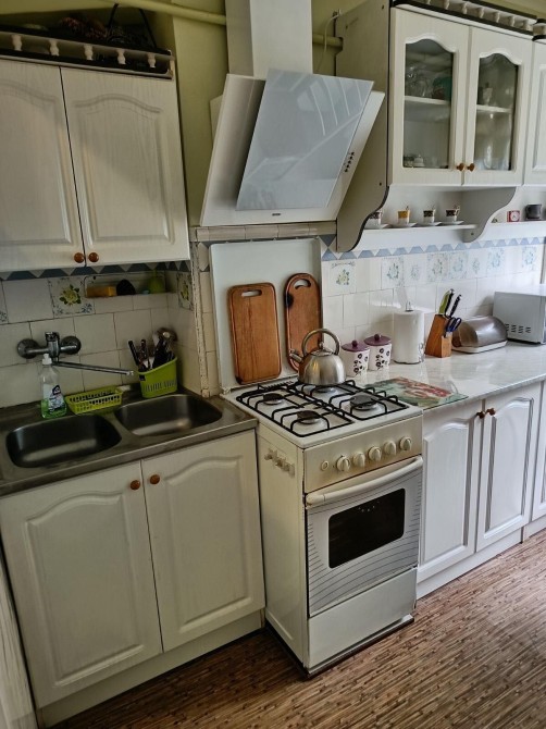 Повністю умебльована : диван розкладний, стіл, шафи кухонні меблі.