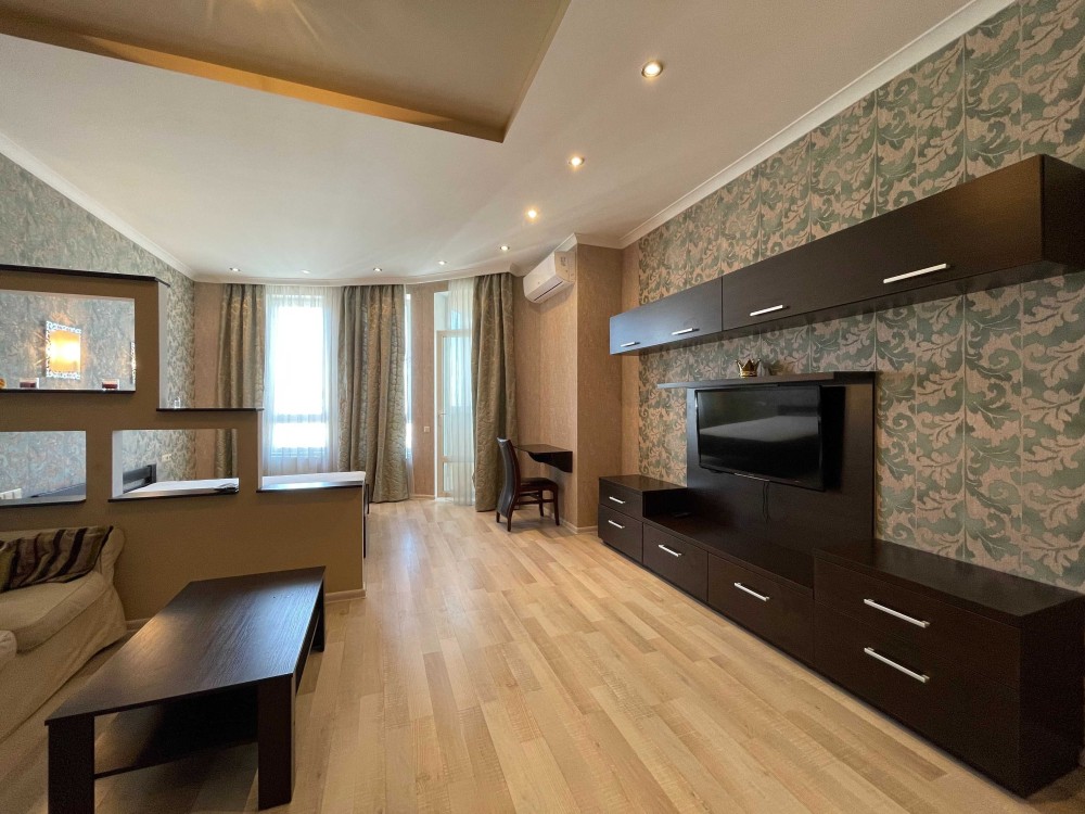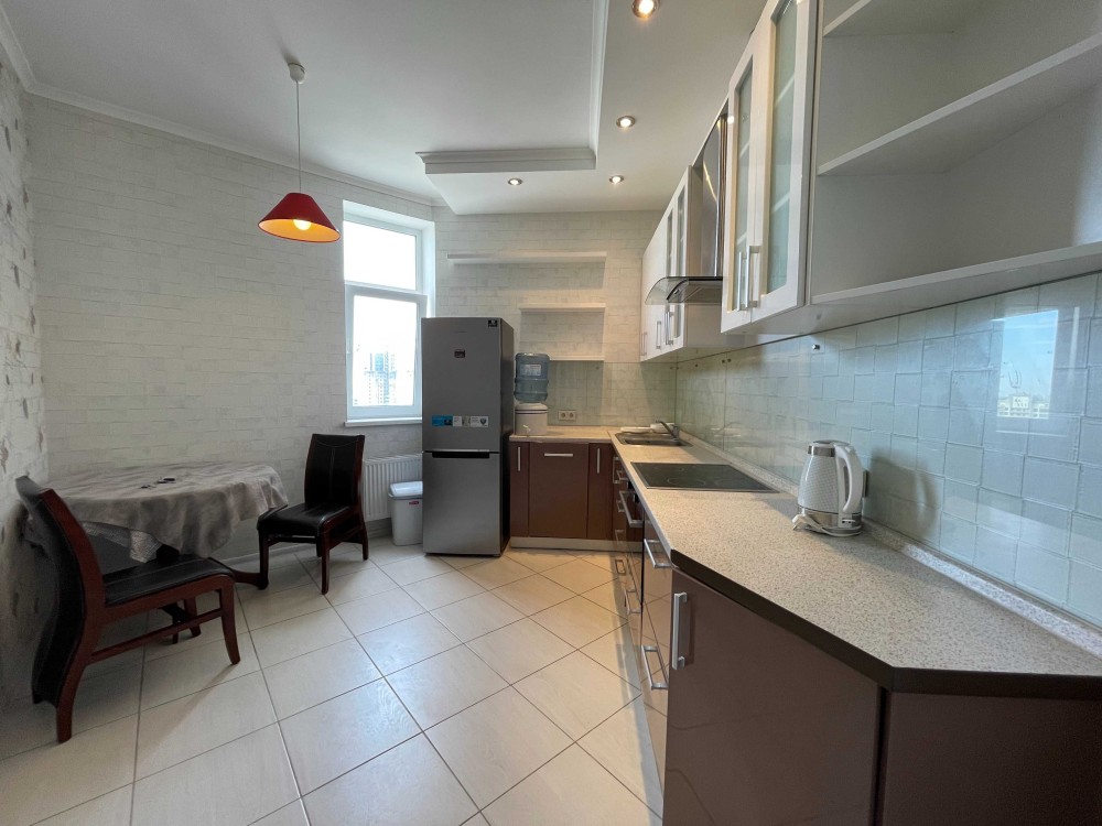 Здається в оренду 1-но кімнатна квартира, 50 м2, за адресою: бульвар Миколи Міхновського, 14-16. Квартира розташований на 17-му поверсі 24-х поверхового будинку. Квартира обладнана всіма меблями, примірочною, окремою кухнею, заскленим балконом, ванною кімнатою. Побутова техніка: пральна машина та посудомийна машина, кондиціонер, бойлер. Територія комплексу закрита, має власну інфраструктуру: приватний дитячий садок, салон краси, кафе, дитячі майданчики. Є служба безпеки, консьєрж, вхід до житлового комплексу через бар'єр, підземний паркінг і гостьова парковка. У пішій доступності (5 хвилин) від станції метро «Дружби Народів», Ботанічний сад.