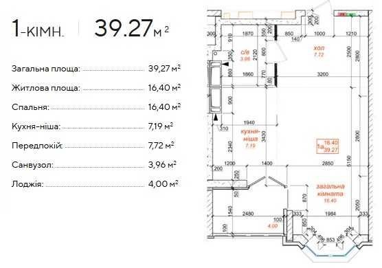 • Общая площадь 39.27 м2