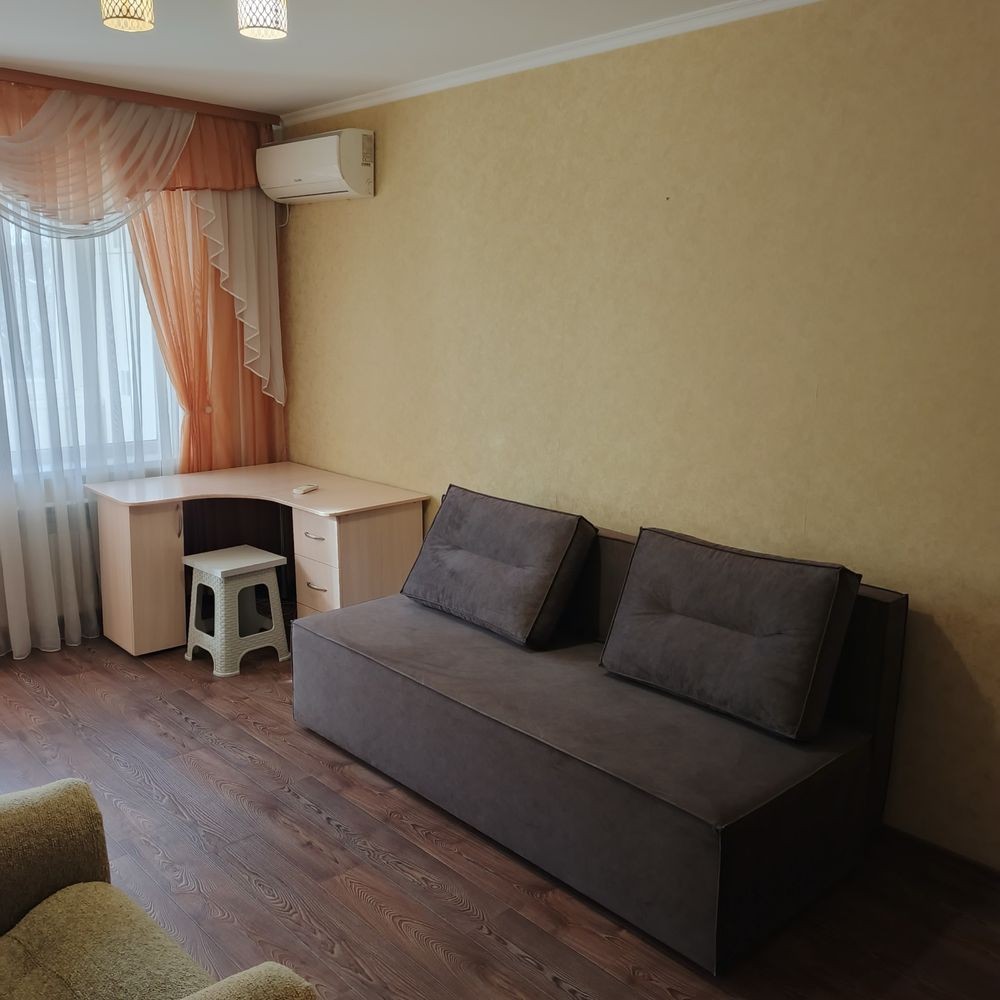 Здається на довгий термін 1 кімнатна квартира , вул. Майора Пугача ( Ватутіна ) , 7 , район Аптеки , Новоіванівський ринок. Квартира на 3 поверсі 5 поверхового будинку. Є меблі та техніка. Диван розкладний , крісло розкладне , дві шафи купе , письмовий стіл, є кондиціонер. Кухня обладнана меблями, холодильник , газова плита, витяжка. У ванній кімнаті є пральна машина , бойлер. Балкон засклений. Поряд з будинком сквер Пономаренка. Лічильники є на воду холодну , гарячу та електрику.