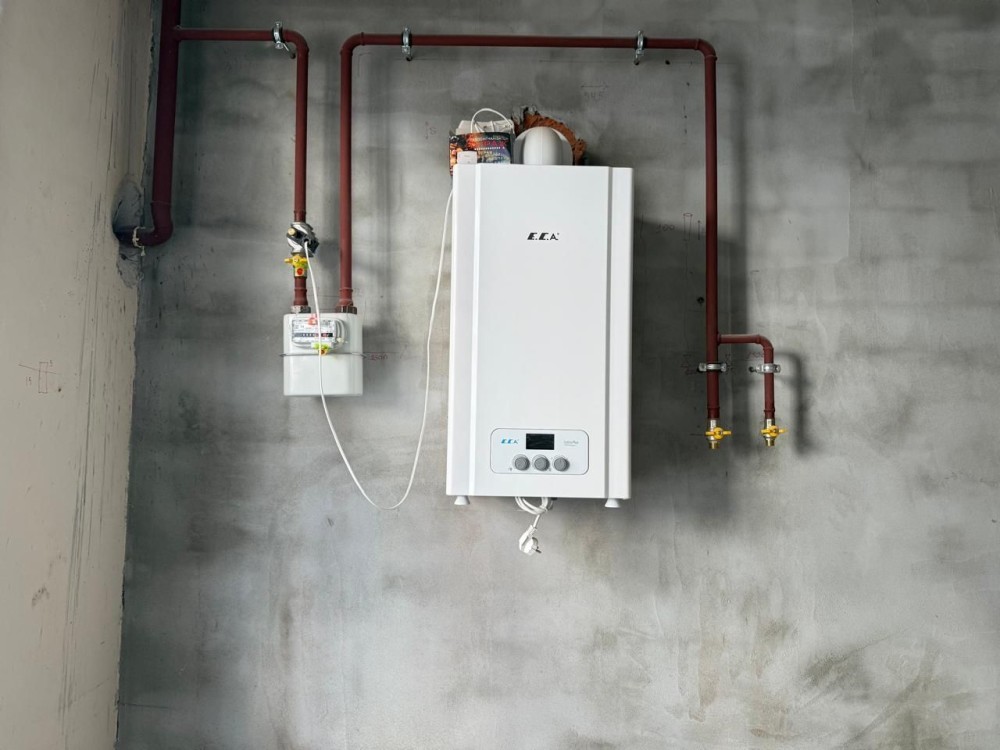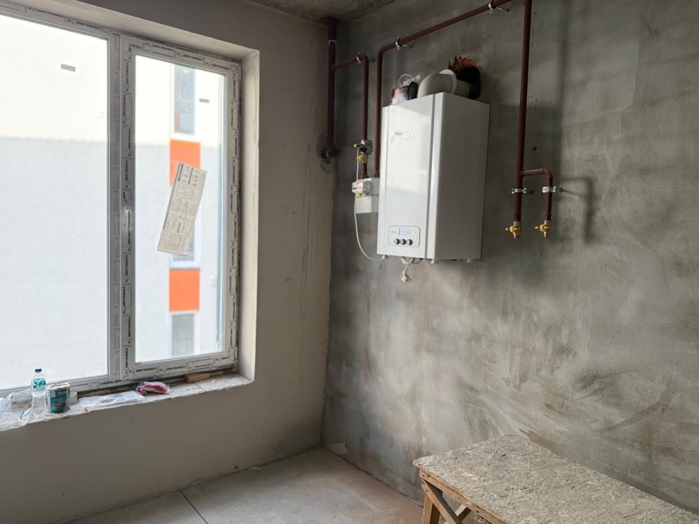 Газовий котел двохконтурний встановлений в квартирі, зроблено розводку освітлення, мали намір трохи змістити стіни по коридору, тому винесли перегородку.