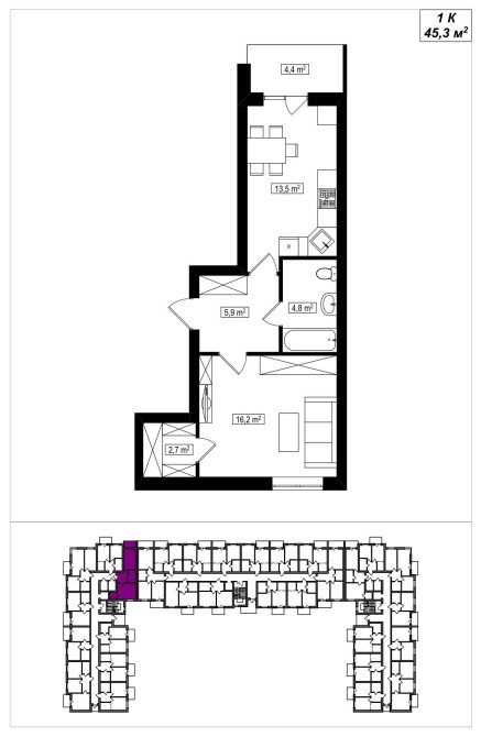 • Общая площадь 45.4 м2
