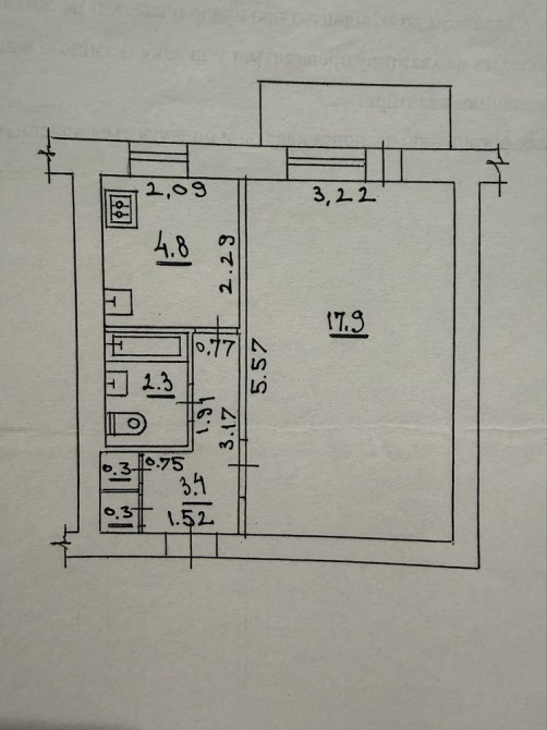 • Площадь кухни 4.8 м2