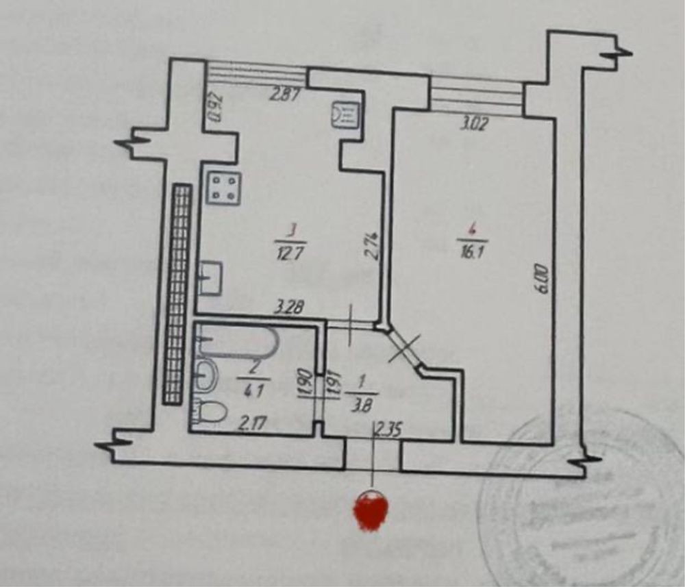 • Площадь кухни 12.7 м2