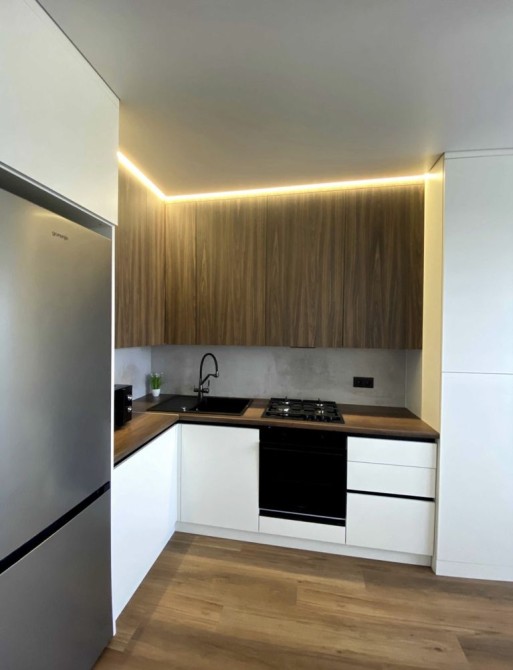 - Квартира укомплектована всіма необхідними меблями та побутовою технікою: холодильник, пральна машина, варильна поверхня, духовка, телевізор, мікрохвильова піч,
