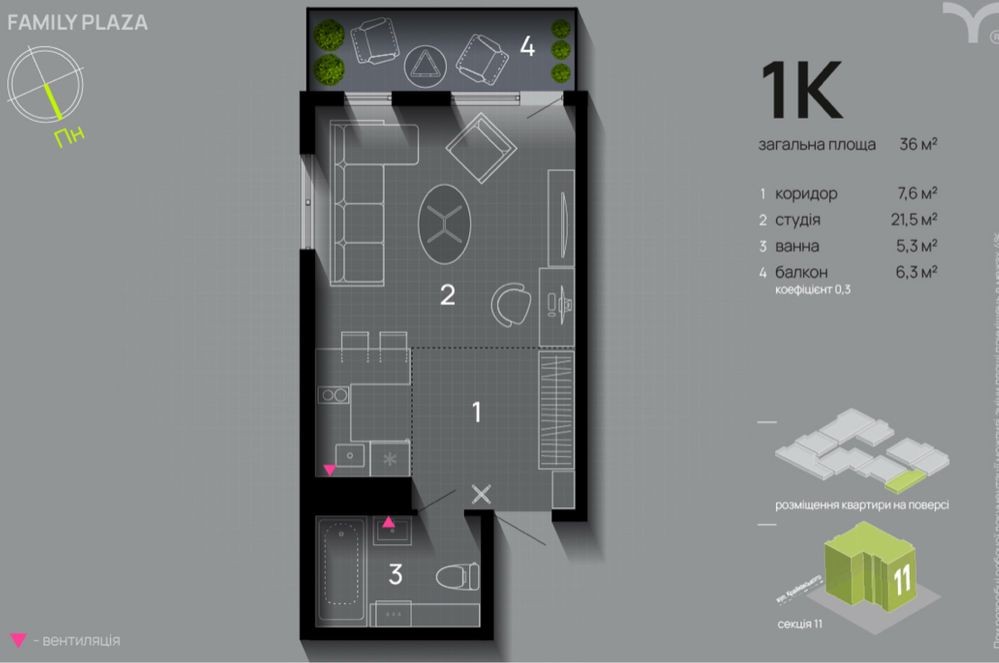 1-кімнатна квартира в Family Plaza — ЗДАНИЙ БУДИНОК