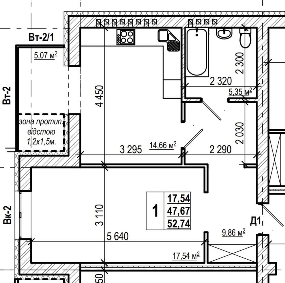 • Общая площадь 52.74 м2