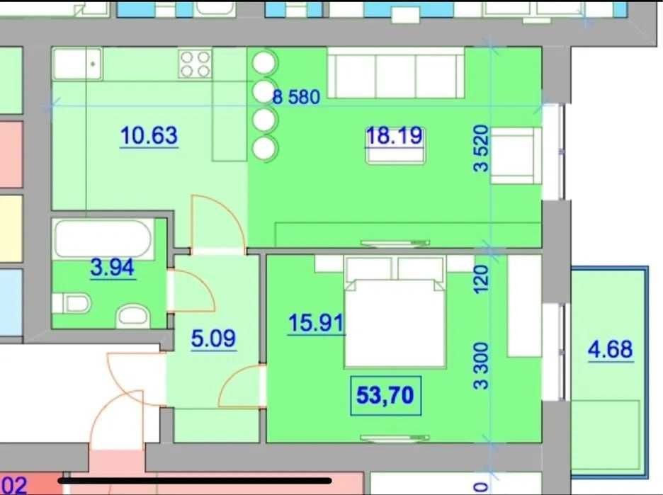 Загальна площа: 53.70 м²