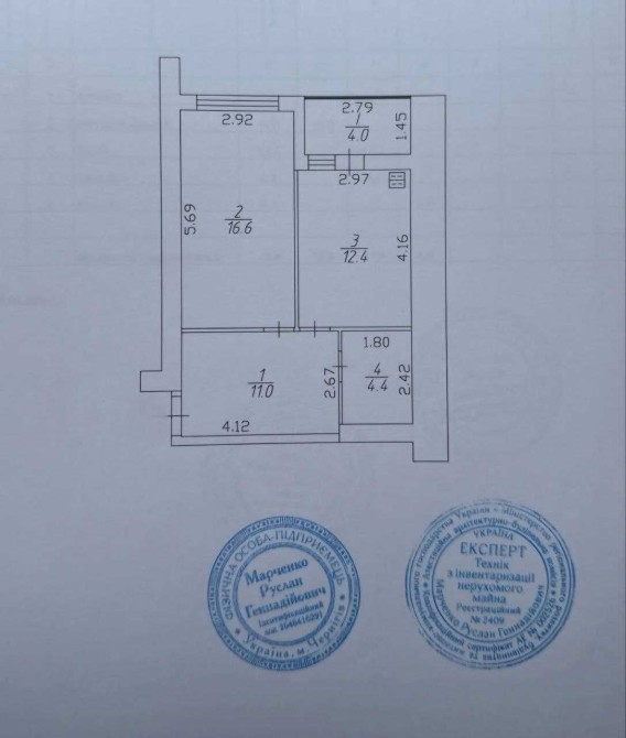 - сумісний санвузол 4.4м².