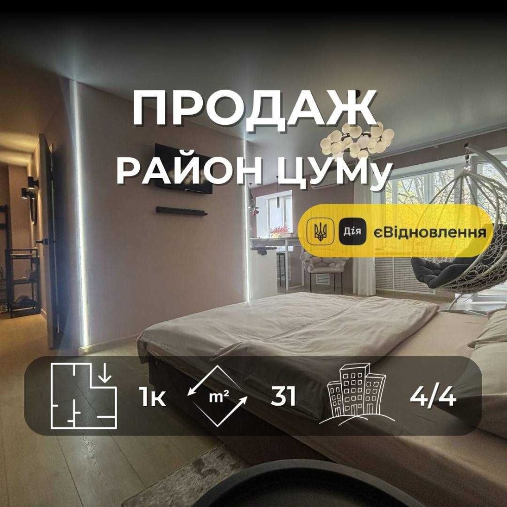 1 кімнатна квартира з дизайнерським ремонтом, меблями та технікою біля ЦУМу RB