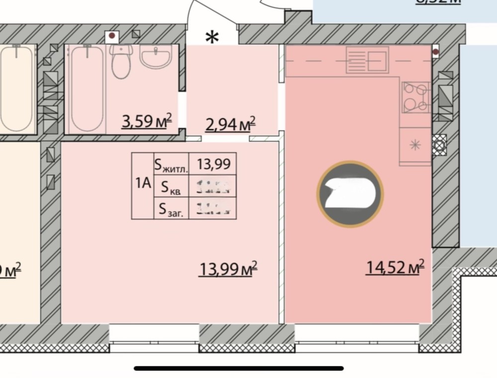 • Площадь кухни 14.5 м2