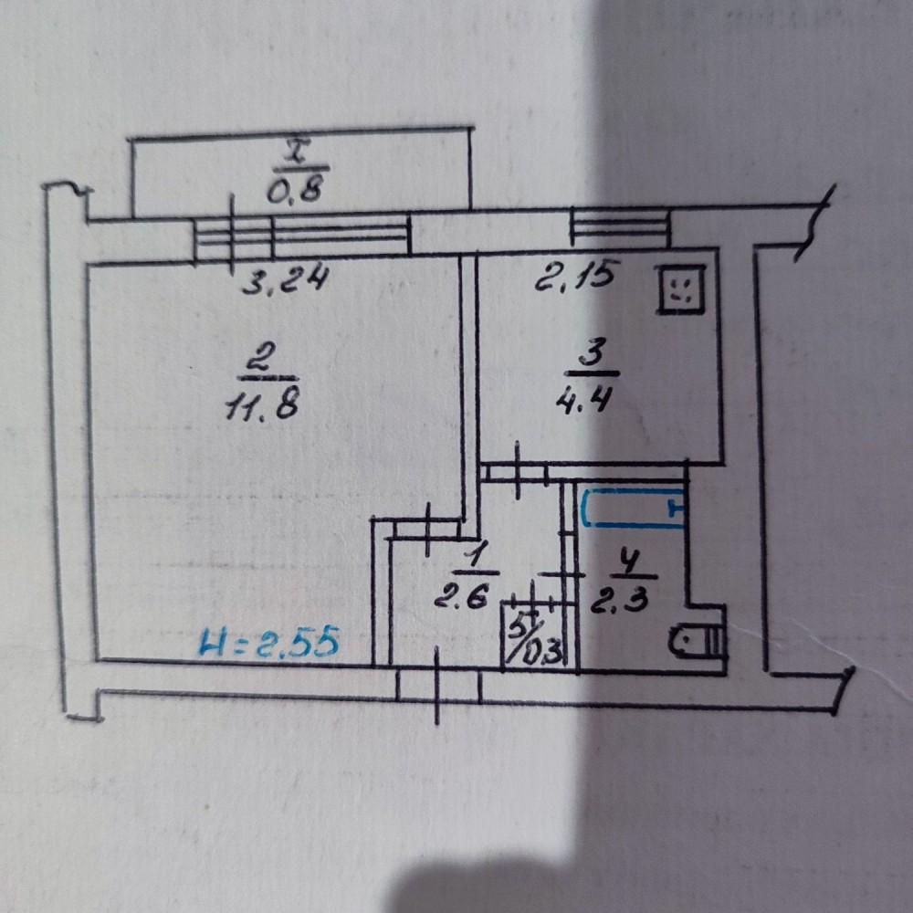 • Площадь кухни 5 м2