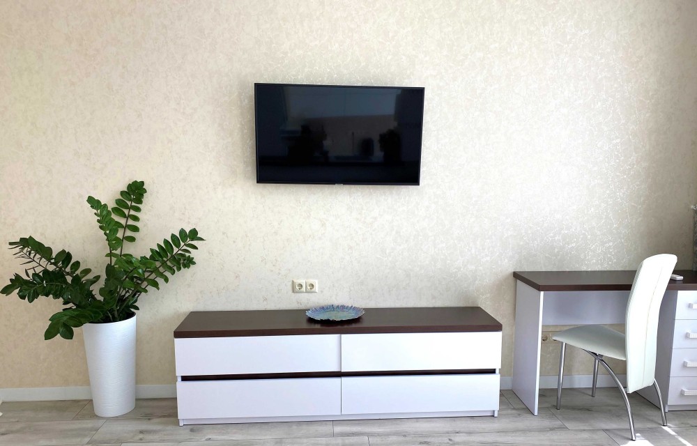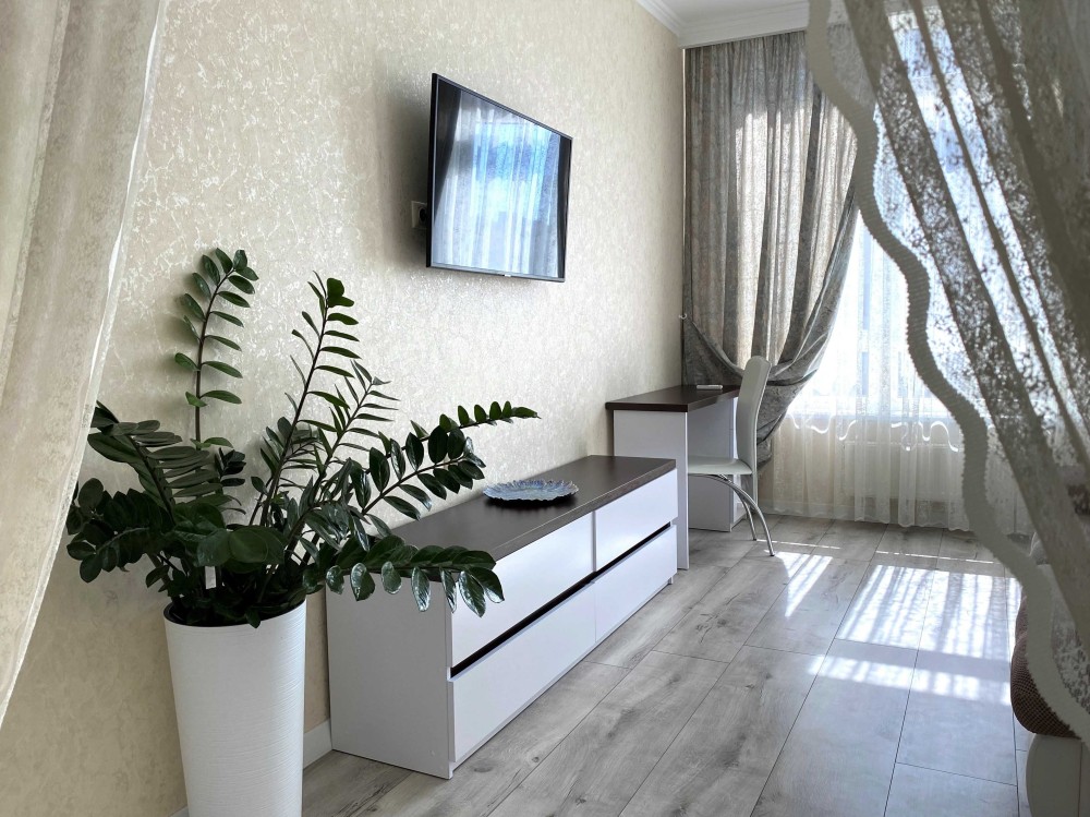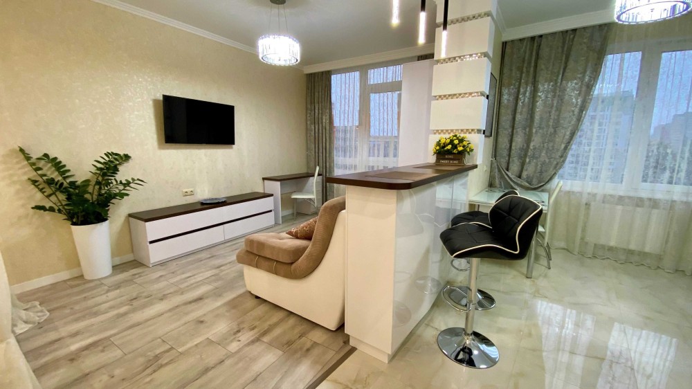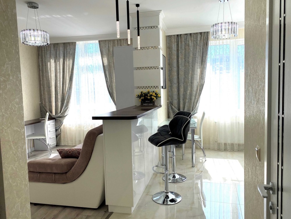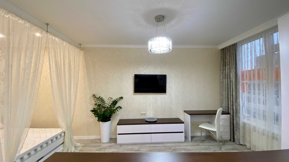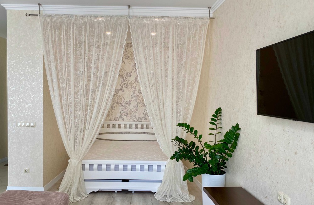 -Белоснежная 1-ком. квартира, словно зефирка ,с мягким диваном и роскошной двухспальной кроватью.