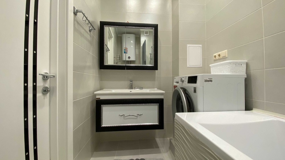 -Санузел с ванной и благородным гарнитуром ,с дорогой сантехникой.