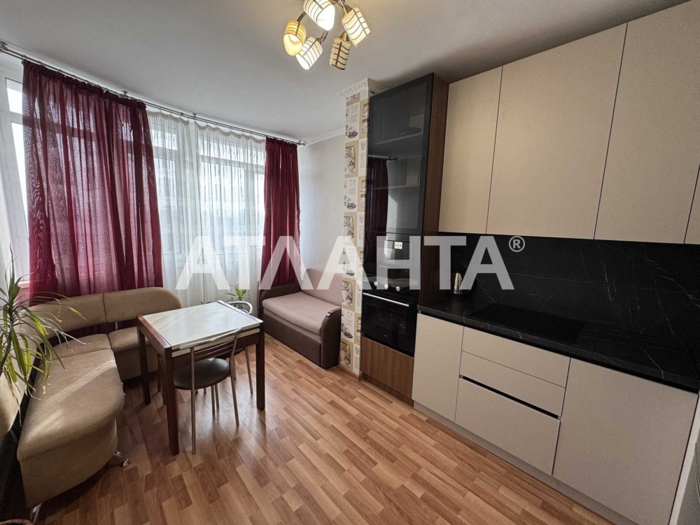 Отличная планировка: просторная кухня-гостиная, спальня с гардеробной, совмещенный санузел. Укомплектована мебелью и бытовой техникой. Остается все новым собственникам.