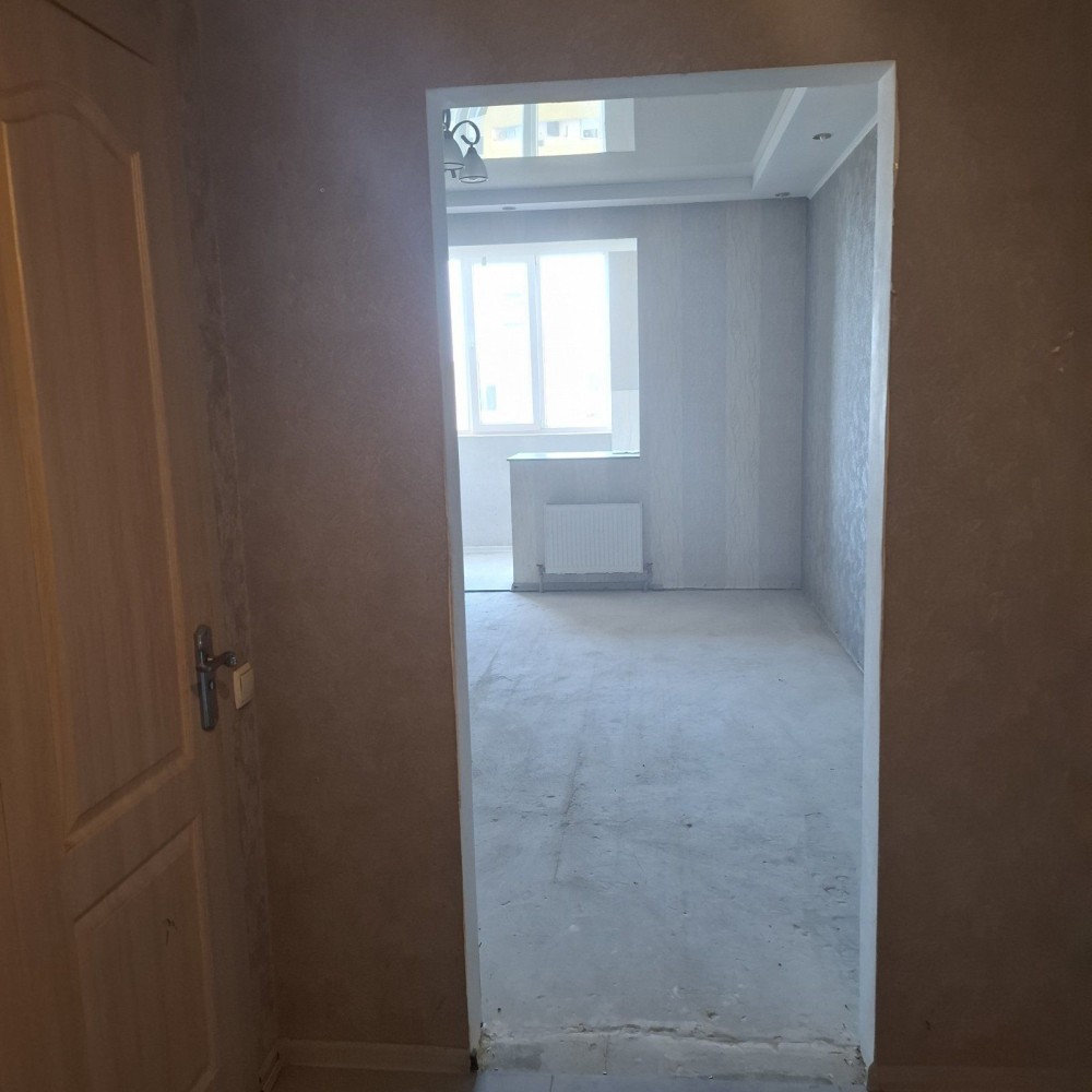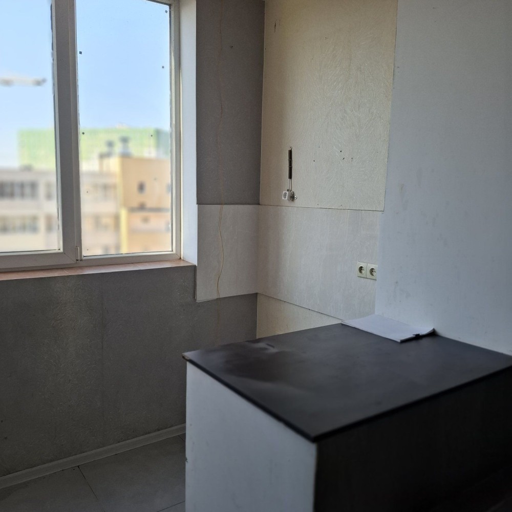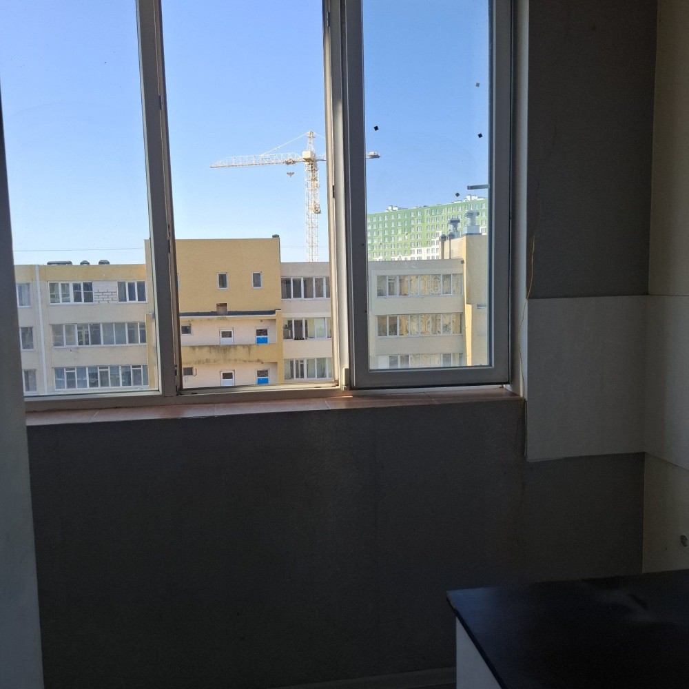 Квартира 32 метра, новый кирпичный дом, окна выходят на юго-запад и в квартире всегда светло и тепло, во двор, а не на проезжую часть .Кухонная зона вынесена на большой балкон и отделена от комнаты.
