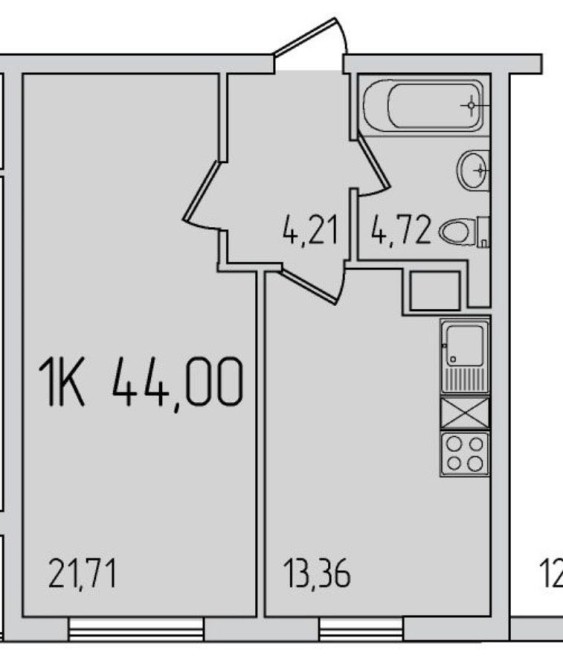 • Общая площадь 44 м2