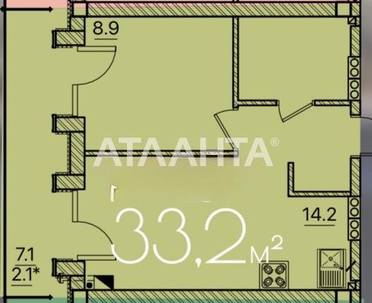 • Площадь кухни 8.9 м2