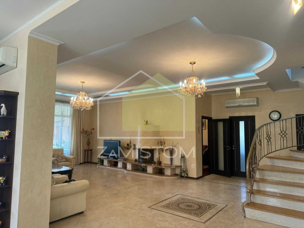 Продаж затишного, цегляного будинку 414 м2 в КМ Золоче, Вишеньки. Ділянка 50 соток із виходом на річку!!! В будинку є все для комфортного проживання, всі необхідні меблі і техніка, басейн 12 на 8 метрів, опалення газове та електричне, встановлена система очищення води, централізоване водопостачання, охорона сигналізація, електрика ( лічильник день – ніч ). 4 спальні, кабінет, камінний зал, кухня з виходом на терасу 72 м2, 4 санвузли, гараж на два авто, котельня, 3 гардеробних, пральня. Охайна ділянка 50 соток із крупномірними насадженнями та автополивом. На території є також гостьовий будинок 100м2 із сауною та великою терасою. Є велике монолітне приміщення для бомбосховища. Котеджне містечко розташоване на березі овіяного легендами річки Золоче, серед мальовничих розливів Дніпра. Розвинена інфраструктура - сервісні служби забезпечують комфорт і безпеку жителів кращого котеджного містечка під Києвом. На території елітного котеджного містечка Золоче є все для гармонійної і комфортного життя: приватний дитячий садок і початкова британська школа з міжнародною програмою навчання, літній мовний табір, спортивні та дитячі майданчики, бігові доріжки, упорядковані пляжі, мальовничі парки, міні-маркет, автомийка. Wish family space, ресторан Zafferano. Золоче Комплекс це найкраще місце для того щоб ростити дітей, займатися улюбленою справою, насолоджуватися спокоєм і красою природи, просто жити, так як цього хочеться. Ідеальне місце для пристрасних мисливців і рибалок, завзятих яхтсменів і любителів активного відпочинку. Не менш важливим моментом для життя в котеджному селищі є безпека. Для жителів котеджного містечка і це питання вирішене всебічно. Тут працює цілодобова охоронна служба, ведеться суворий контроль доступу на територію. Крім того, містечко оснащений сучасними системи відеоспостереження та сигналізації. Ціна 550000 у.о. Найбільший вибір будинків і ділянок. Номер оголошення №1017. Дивіться інші оголошення автора. Більше об’єктів нерухомості на нашому сайті АН "ZaMistom"