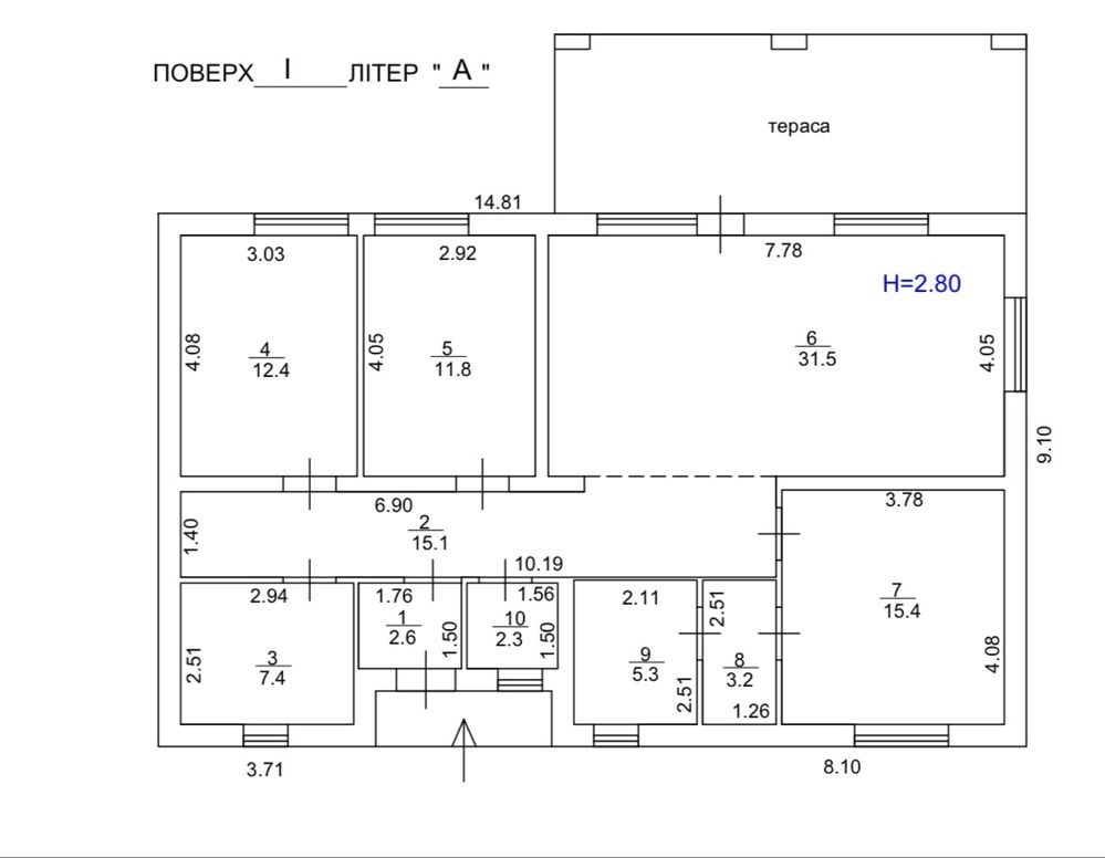 Продаж одноповерхового будинку площею 110м.кв, 3 окремі кімнати