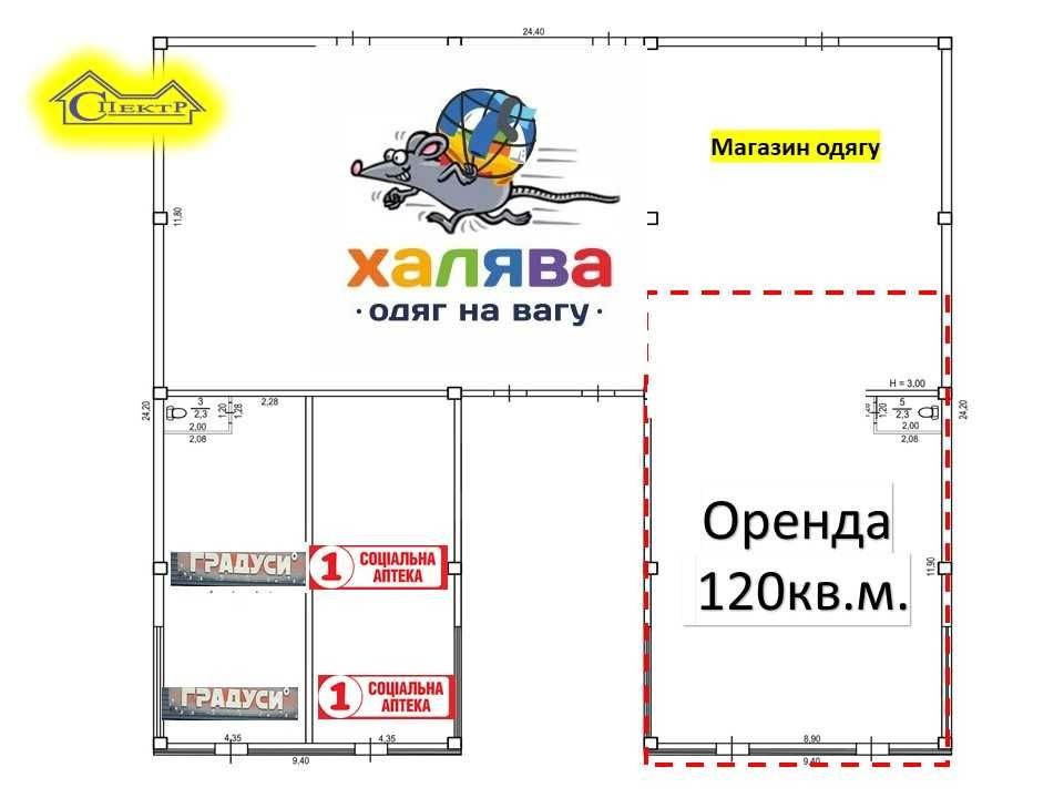 120кв.м. два входи навпроти АТБ Залізничний Вокзал (Довгинцево)
