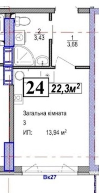 • Общая площадь 22.3 м2