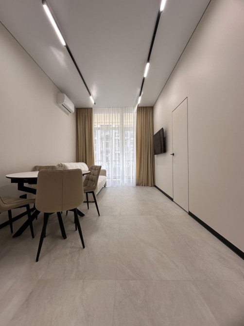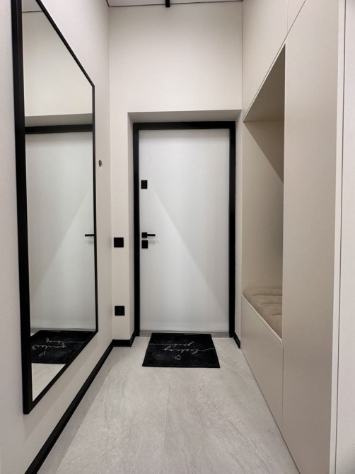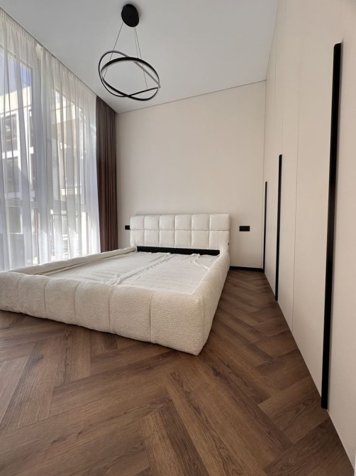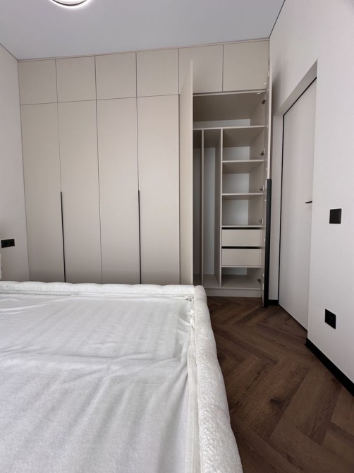 Панорамні вікна пропускають багато природного світла, роблячи квартиру світлою та затишною. Є багато шаф для зручного зберігання речей.