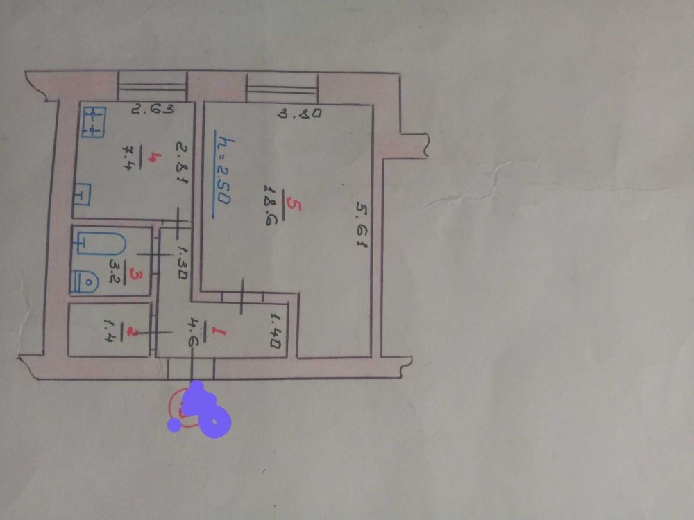 • Площадь кухни 7.4 м2