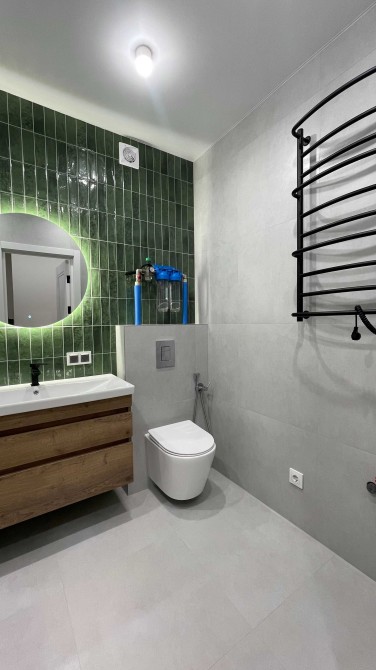 Санвузол суміжний, облицьований сучасною плиткою.