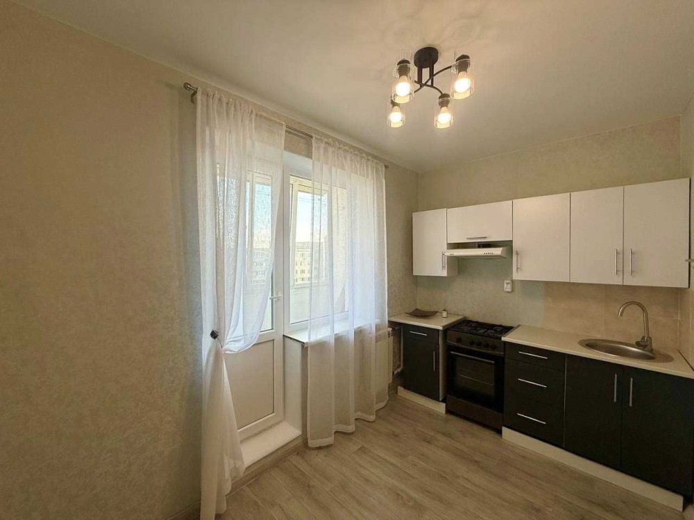 9-й поверх. Площа 38,2 / 19 / 7,3 м². Санвузол роздільний. Встановлені металопластикові вікна, балкон засклений.