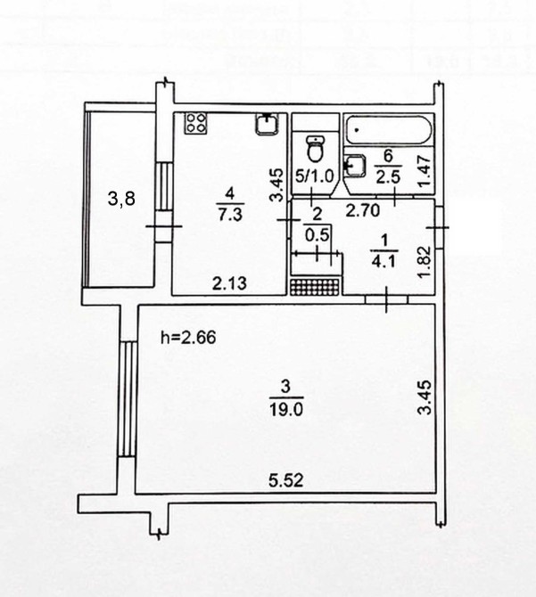 • Общая площадь 38 м2