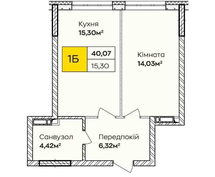 1-кімнатна квартира площею 40.07 м², 20 поверх, будинок 1 у ЖК «Синергія Київ».