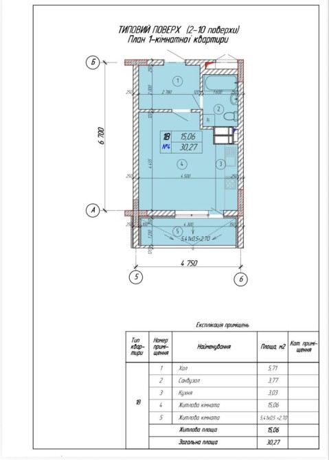 • Общая площадь 30.27 м2