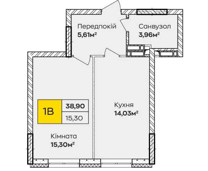 1-кімнатна квартира площею 38.9 м², 6 поверх, будинок 1 у ЖК «Синергія Київ».
