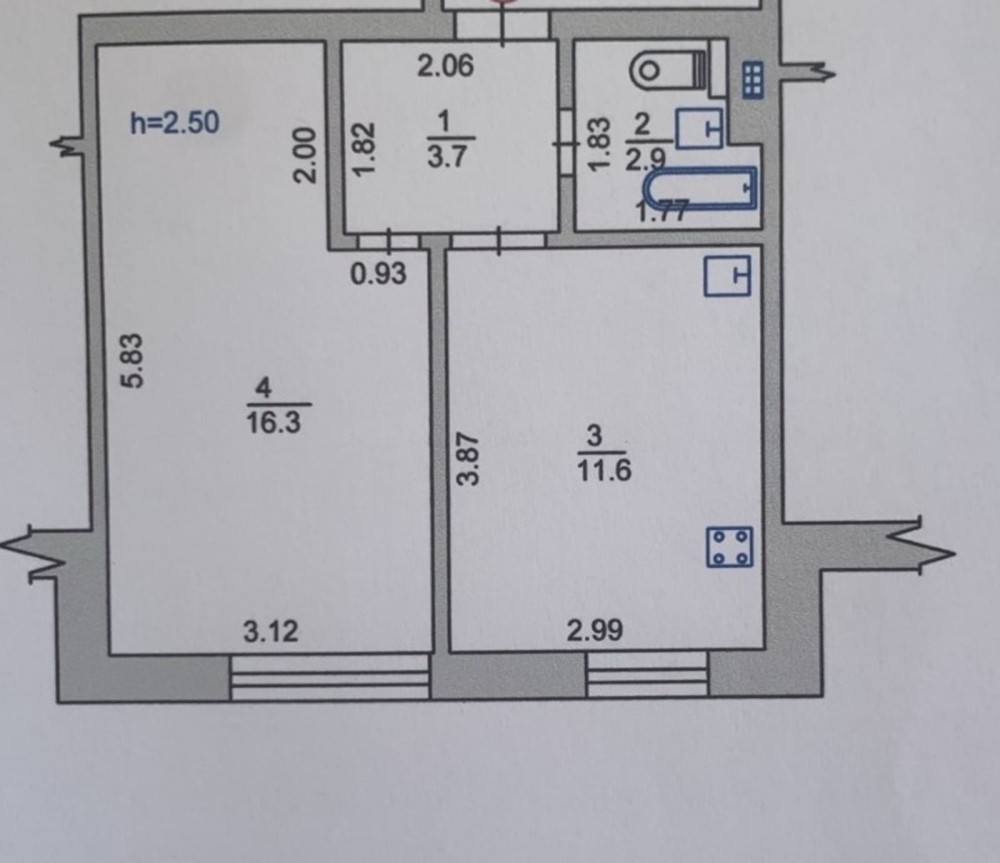 Продам 2к квартиру пр.Олександра Поля, 92а Житловий стан Днепр 16
