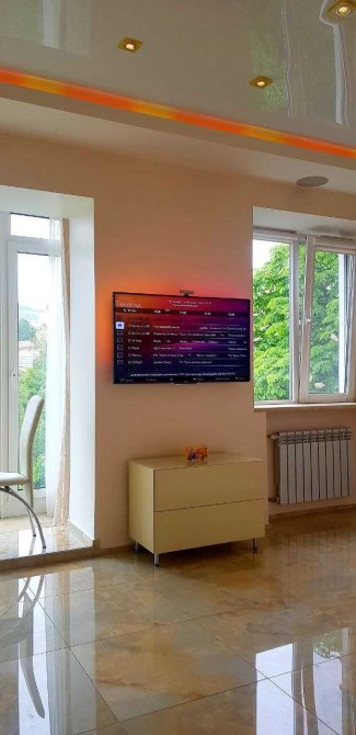 Укомплектована усім для комфортного проживання: двоспальне ліжко, розкладний диван, місткі шафи. Обладнана усією необхідною технікою від провідних світових брендів, Smart TV, автономна гаряча вода, вбудована музика по усій квартирі.