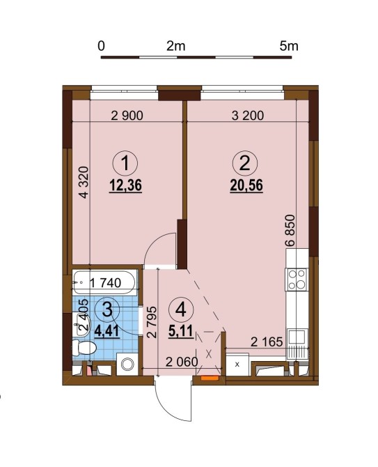 • Общая площадь 43 м2