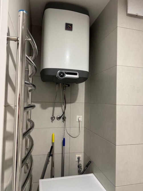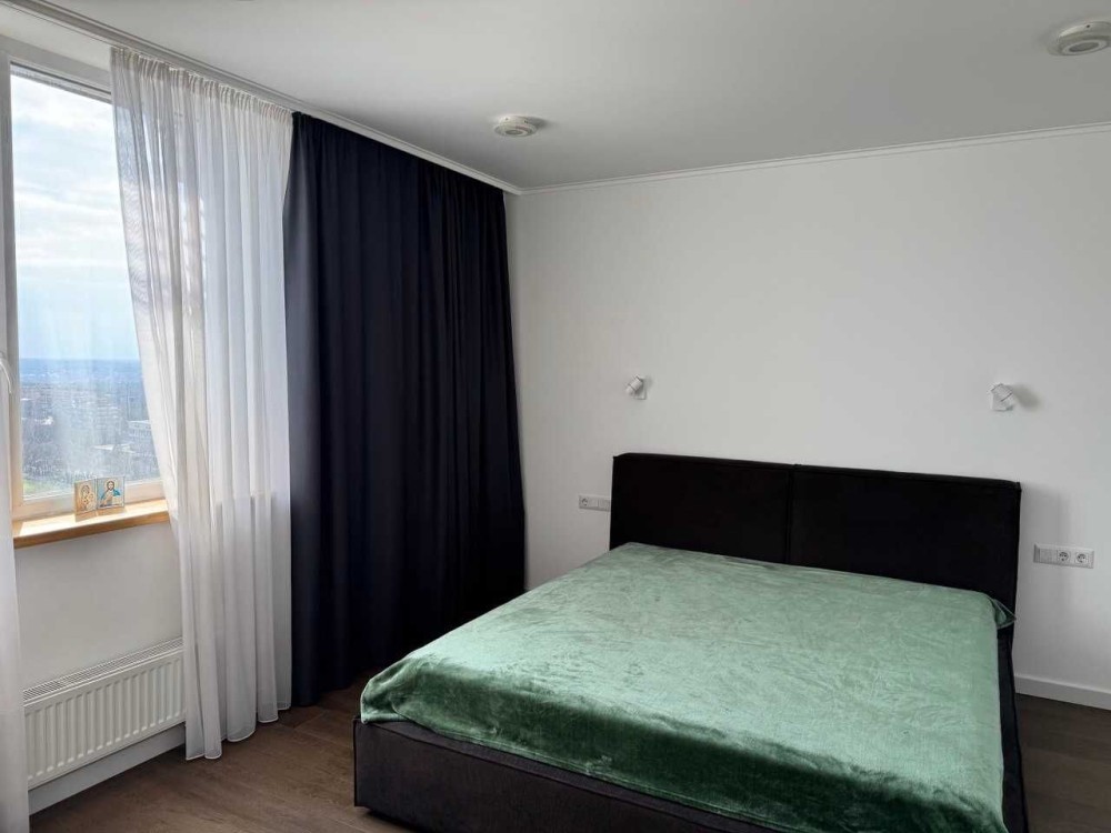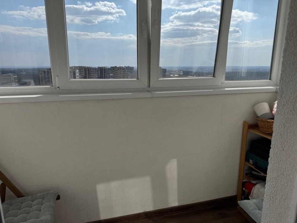 В кімнаті комод з дзеркалом. Балкон великий з красивим видом. Квартира зі звукоізоляцією. Стіни - миюча фарба, стелі - гіпсокартон, підлога - плитка. Санвузол сумісний. Опалення - газова котельня на будинку, є генератор, який забезпечує подачу води і опалення. Поруч ліс