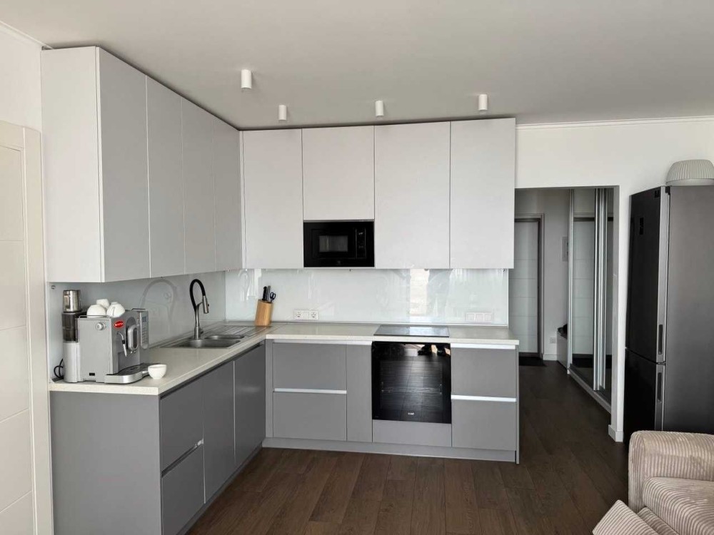Квартира з ремонтом та технікою: вмонтована кухня, посудомийна машина, індукційна панель, духова шафа, вмонтована мікрохвильова піч, холодильник, вбудована витяжка, пральна машина, бойлер, два кондиціонери. Дві великими шафи.